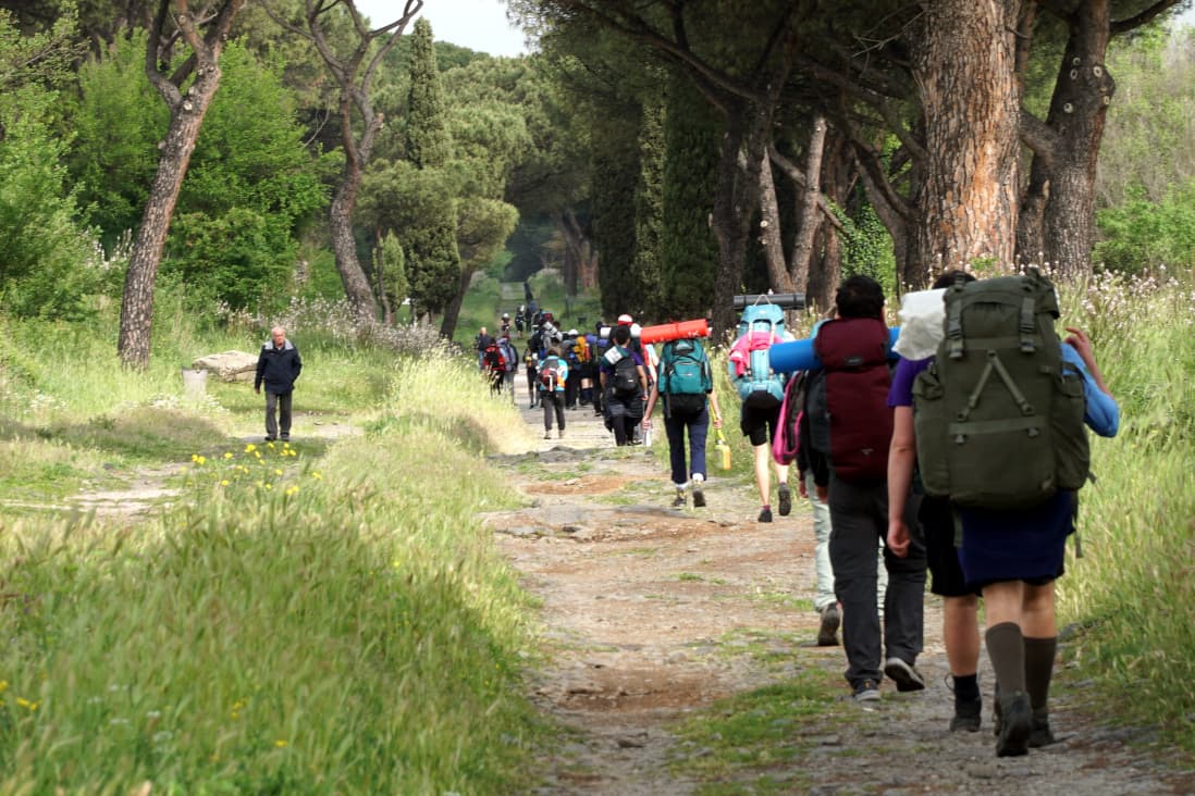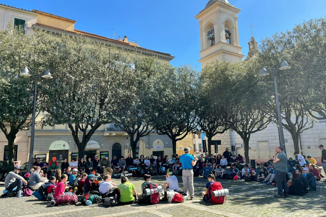 To follow in the footsteps of Ignatius, on the same road travelled 499 years ago, from Gaeta to Rome, and rediscover what it means to be inspired by Ignatian spirituality today. With this desire, about eighty young people, aged between 15 and 30, from Albania, Romania and various regions of Italy (Sicily, Calabria, Campania, Abruzzo, Lazio, Tuscany, Liguria Piemonte…), together with two religious sisters and about ten Jesuit fathers, accompanied over the weekend by the Provincial, Roberto Del Riccio, walked 20 kilometres a day between 22 and 25 April.