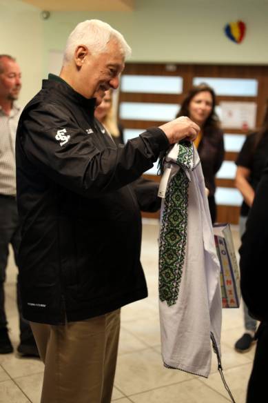 In the morning, Fr General, accompanied by Fr Assistant, the EUM Provincial and members of the Bucharest community, visited the Jesuit Refugee Service team. After a presentation of the services offered by Bianca Albu, Project Manager, and Catalin Albu, General Manager, some employees from Romania, Ukraine, an employee from Syrian and another from Rwanda who has become a Romanian citizen, spoke in a style of great simplicity.