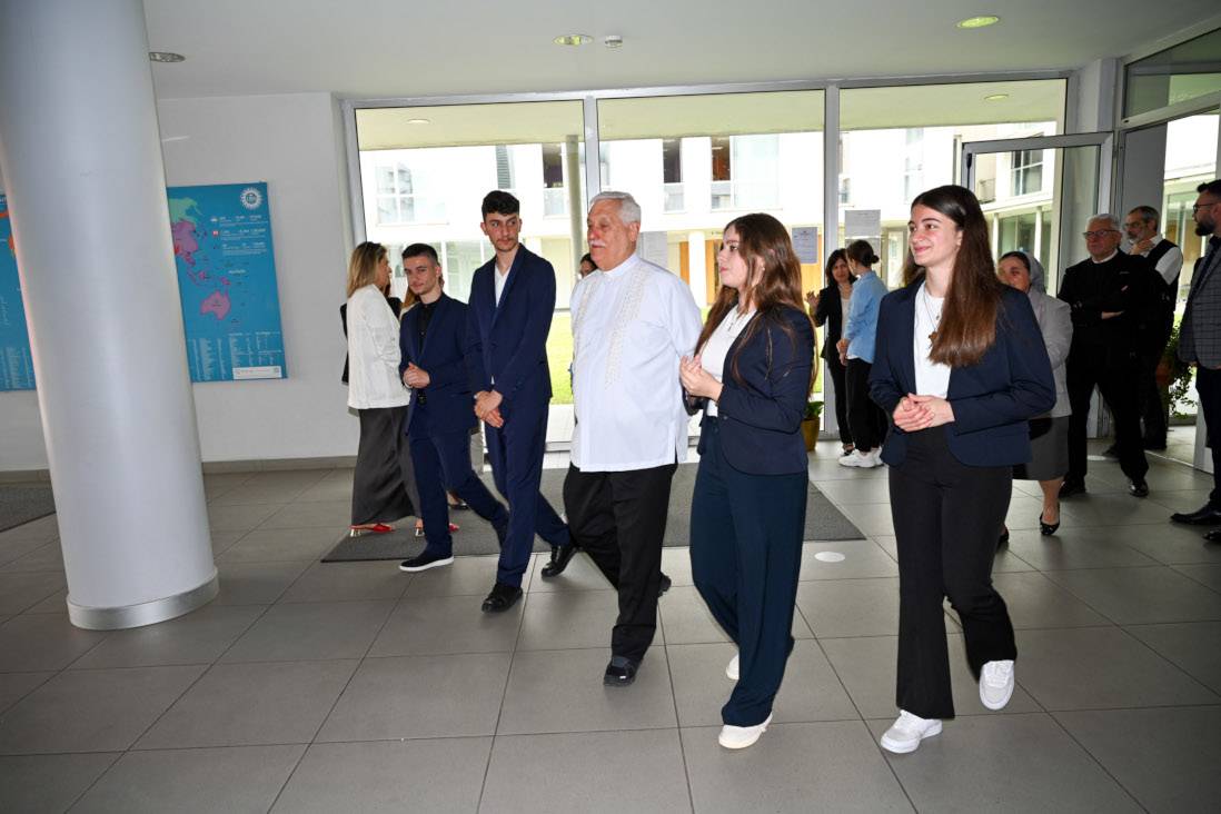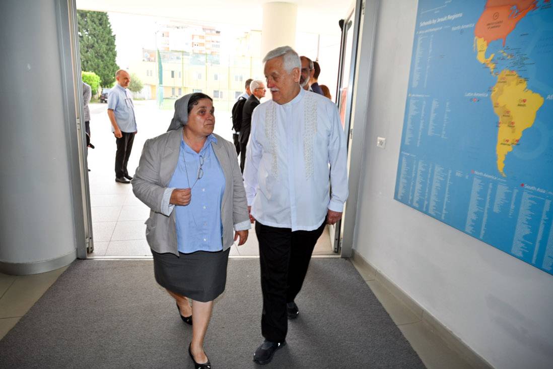 The day began with a visit to the rector of the seminary, Dom Mark Shtjefni, who spoke of the valuable service provided by the Society and the training he had received. This was followed by a welcome to the 400-strong Pjetër Meshkalla College in Shkodra, with the headmistress, Sr Valentina Ndreca, and a delegation of teachers. A delegation of pupils then accompanied Father General, the Assistant and Father Provincial to visit the rooms: the classrooms, the laboratories, the chapel. “Our school is beautiful, spacious, full of light,” stressed Fr Zef Bisha SJ, Superior.