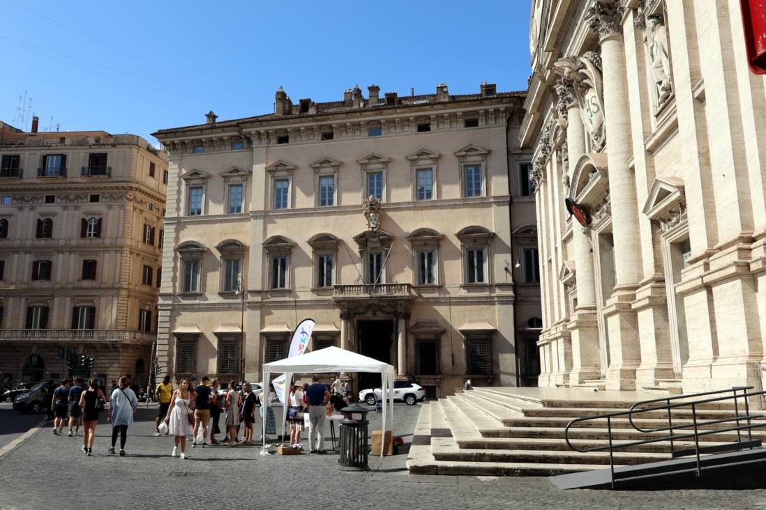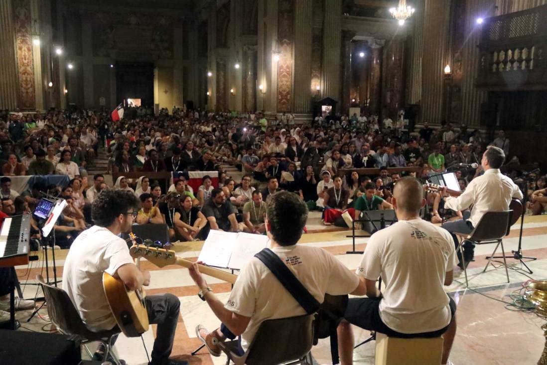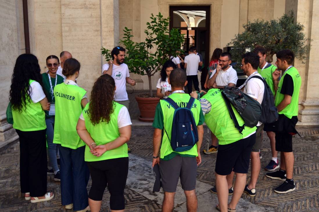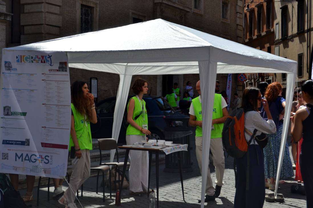 The Visconti Institute, adjacent to the Church of St. Ignatius, became our headquarters and, above all, a true “home” for the young people of the Ignatian family: a courtyard open to all, a place of refreshment, welcome, and encounter for thousands of young pilgrims. From there, each day, after a meaningful time of silent prayer, the volunteers set out to the locations of their activities, driven by a single desire: to serve with joy.
